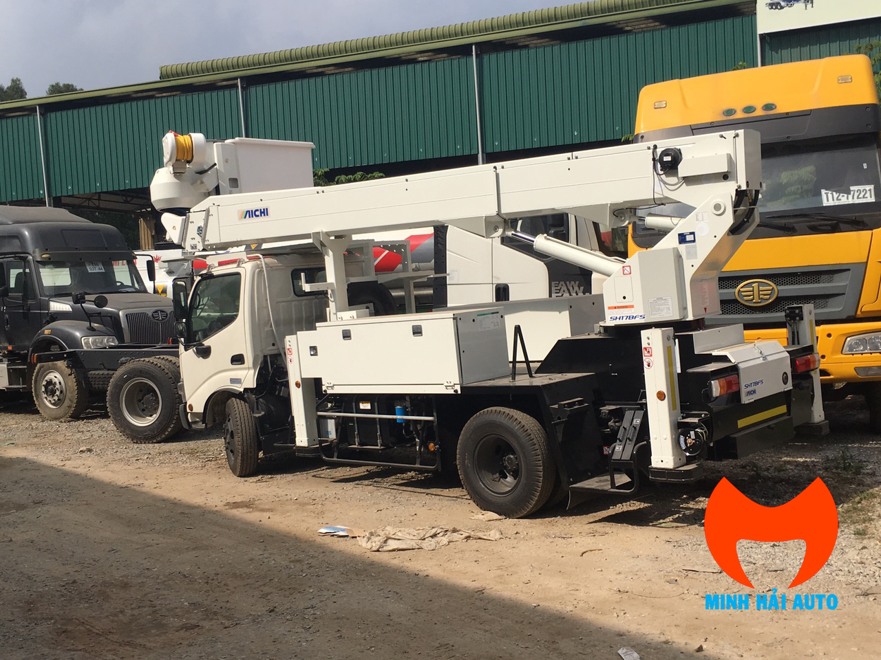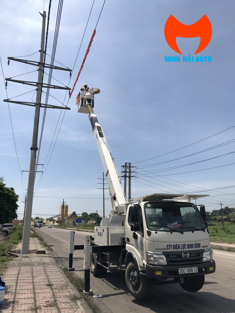 Hình ảnh xe gàu nâng người làm việc trên cao sửa chữa điện hotline Hino Dutro - Aichi